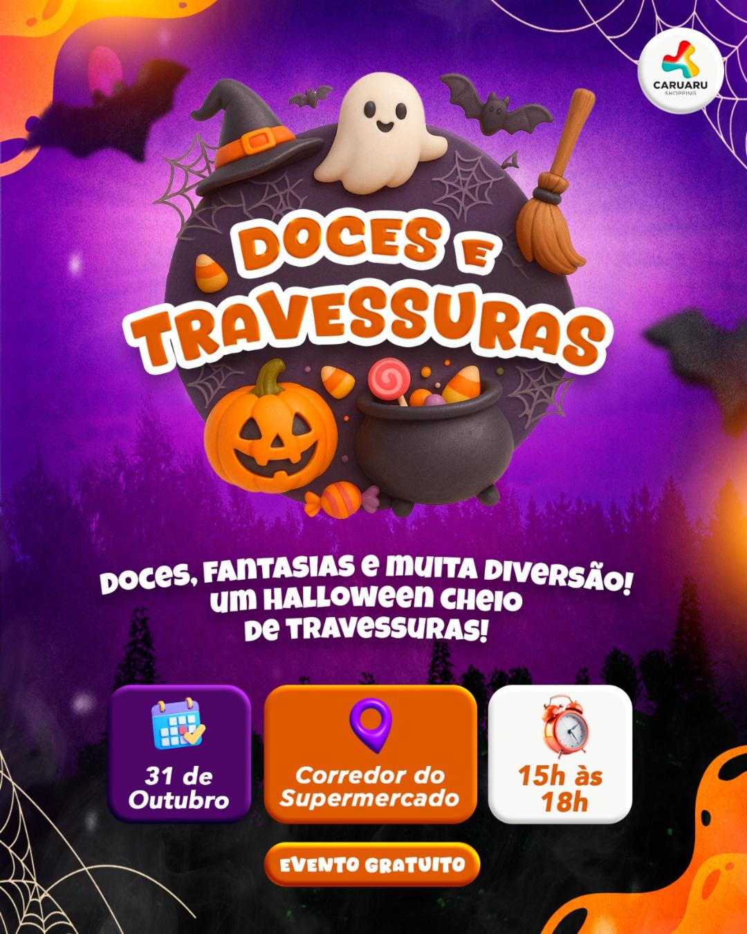 No dia 31 de outubro, das 15h às 18h, o Caruaru Shopping realizará o Doces e Travessuras, um evento repleto de surpresas que vai transformar a tarde dos pequenos em um momento mágico e cheio de diversão. O evento acontece no corredor do supermercado que será tomado pela decoração e magia do Halloween.