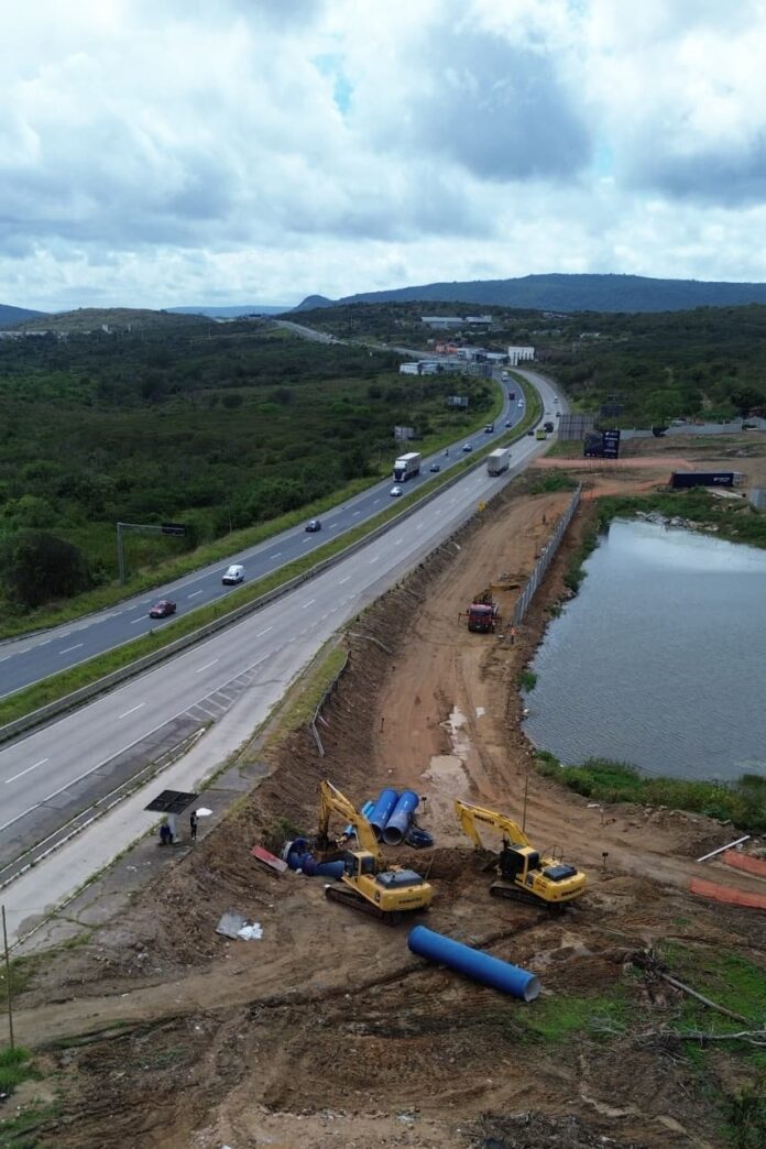 A obra da Adutora do Agreste alcançou uma etapa decisiva nesta quinta-feira (2), em Caruaru, no Agreste de Pernambuco. A Companhia Pernambucana de Saneamento (Compesa) concluiu a travessia de nove tubulações de grande porte sob o km 126 da BR-232, por meio de uma estrutura metálica conhecida como ARMCO — um túnel construído especialmente para dar passagem ao empreendimento. Foram instalados 63 metros de tubos com 1.200 milímetros de diâmetro, capazes de transportar quase 1.500 litros de água por segundo do Rio São Francisco para o atendimento de Caruaru e outros 13 municípios do Agreste.