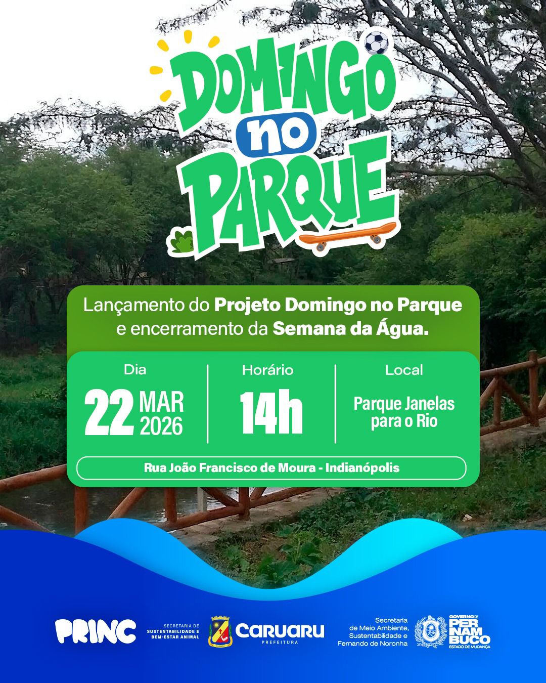 A Prefeitura de Caruaru, por meio da Secretaria de Sustentabilidade e Bem-Estar Animal, realiza neste domingo (22), a partir das 14h, no Parque Janelas para o Rio, o lançamento do projeto “Domingo no Parque”, em conjunto com a culminância da Semana da Água.
